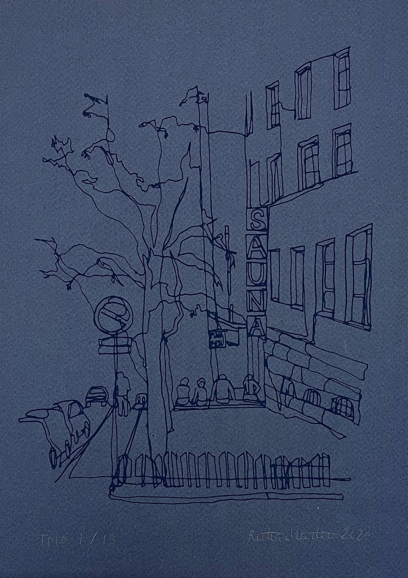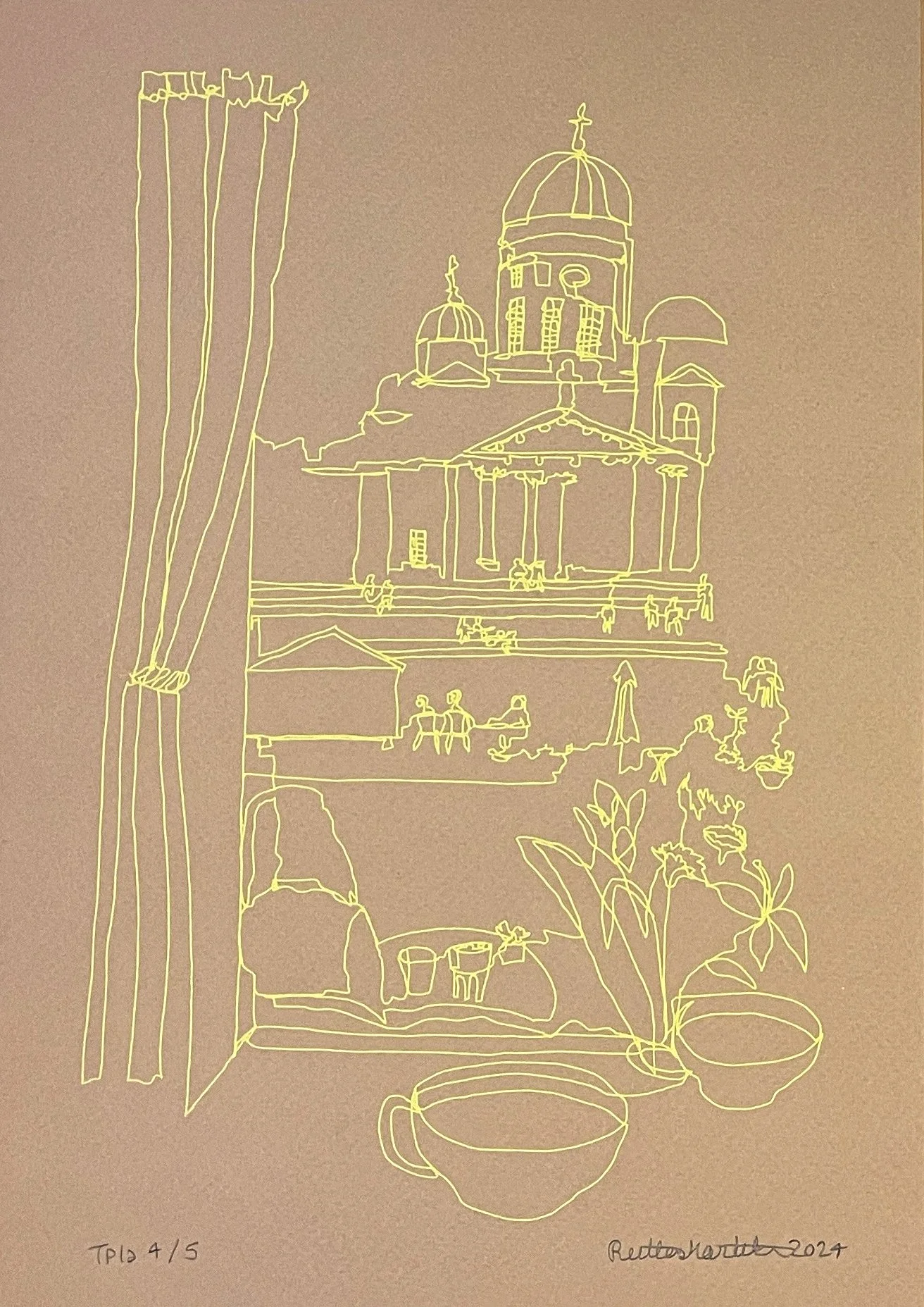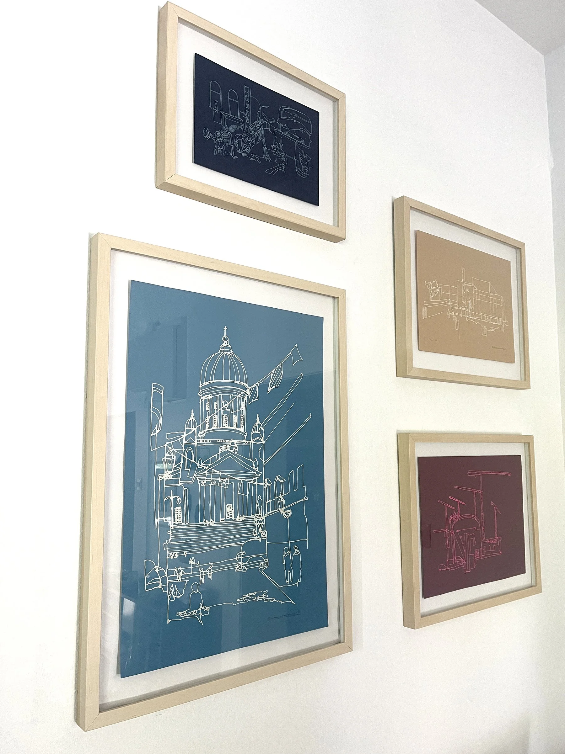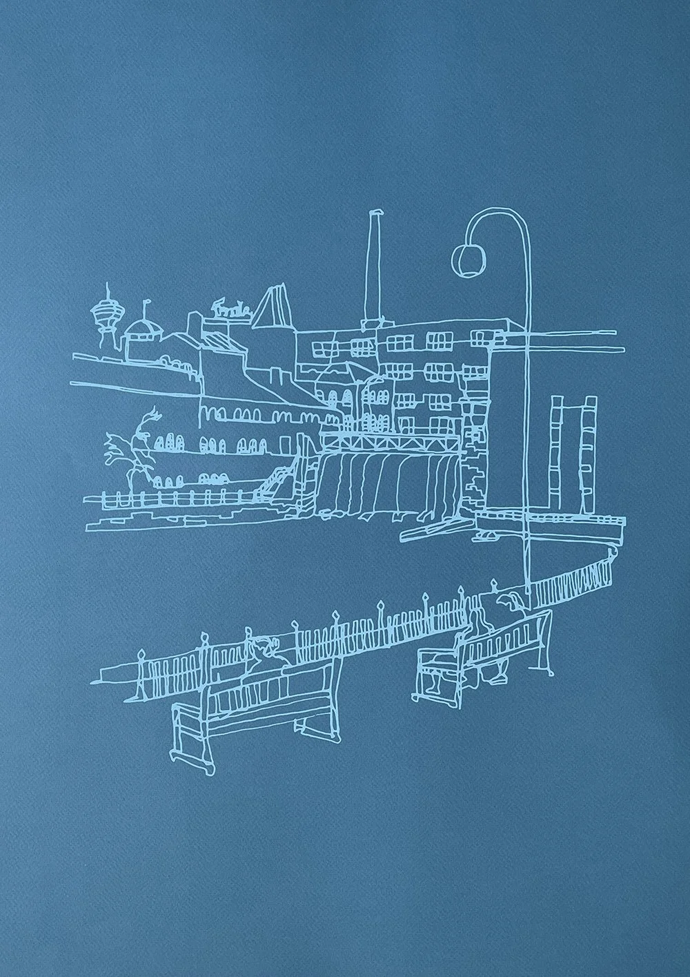 Viivapiirrokset / Serigrafia Piirroksiini pohjautuvia serigrafiavedoksia vuosilta 2023-2025. Viivapiirrokset Kaupunkeja / Sisustus / Paperituotteet / Tapahtumat / Editorial / Projektit